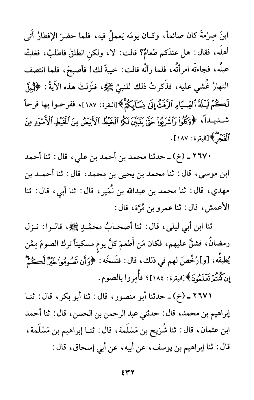 2671 - (خ) - حدثنا أبو منصور، قال: ثنا أبو بكر، قال: ثنا إبراهيم بن محمد، قال: حدثني عبد الرحمن بن الحسن، قال: ثنا أحمد بن عثمان، قال: ثنا شريح بن مسلمة، قال: ثنا إبراهيم بن مسلمة، قال: ثنا إبراهيم بن يوسف، عن أبيه، عن أبي إسحاق، قال: