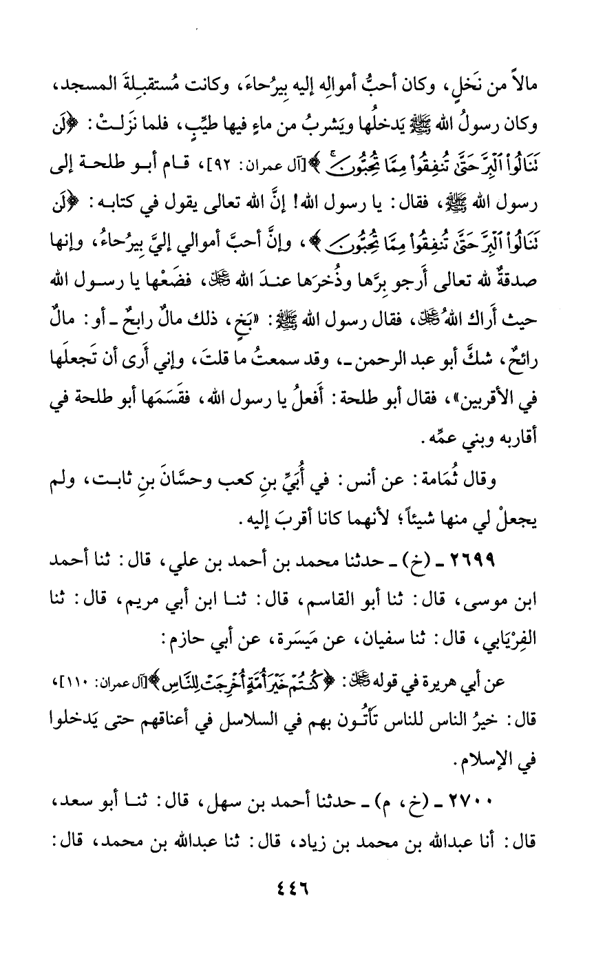 2700 - (خ، م) - حدثنا أحمد بن سهل، قال: ثنا أبو سعد، قال: أنا عبد الله بن محمد بن زياد، قال: ثنا عبد الله بن محمد، قال: #447# ثنا إسحاق، قال: أنا سفيان، عن عمرو بن دينار: