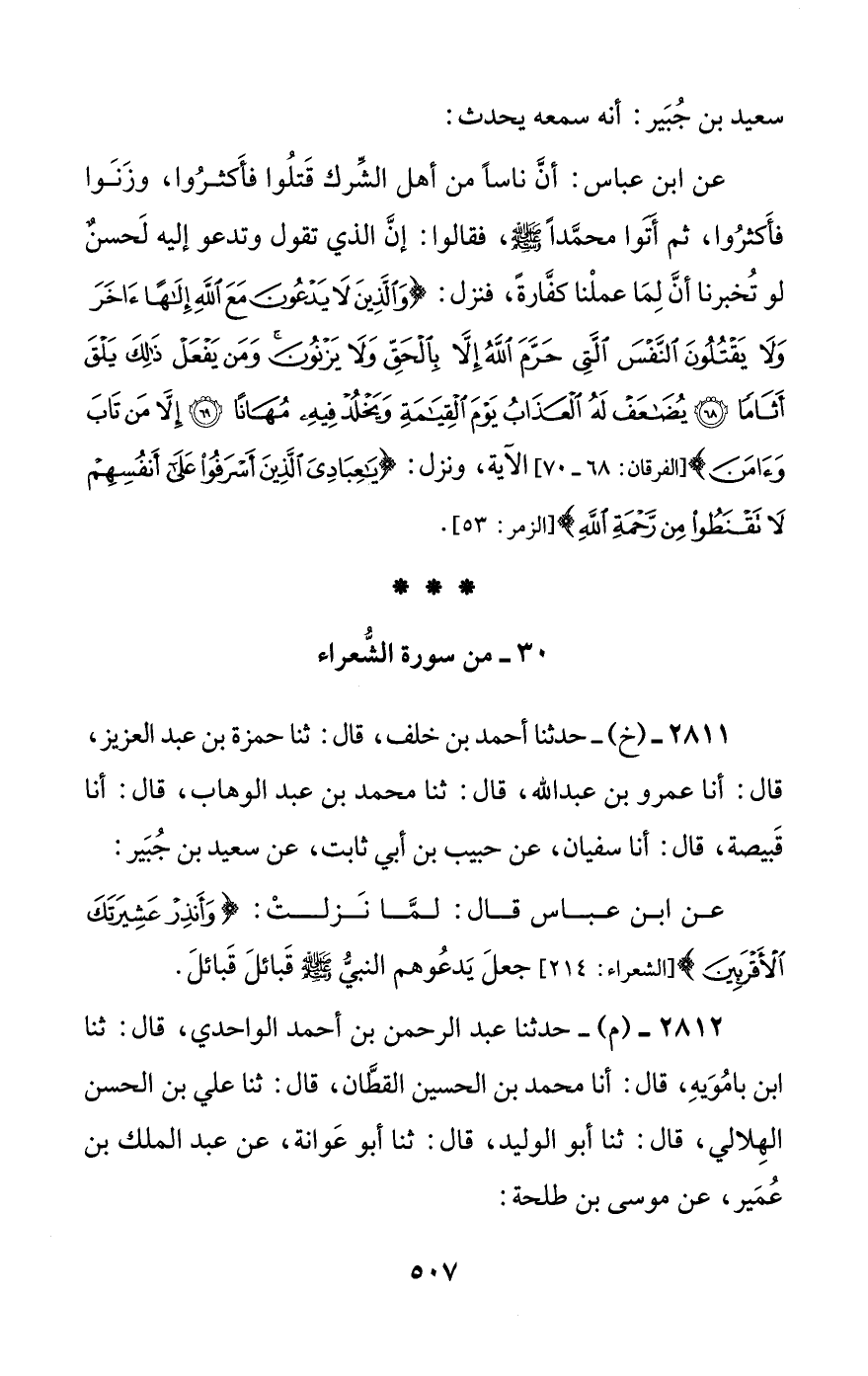 2811 - (خ) - حدثنا أحمد بن خلف، قال: ثنا حمزة بن عبد العزيز، قال: أنا عمرو بن عبد الله، قال: ثنا محمد بن عبد الوهاب، قال: أنا قبيصة، قال: أنا سفيان، عن حبيب بن أبي ثابت، عن سعيد بن جبير: