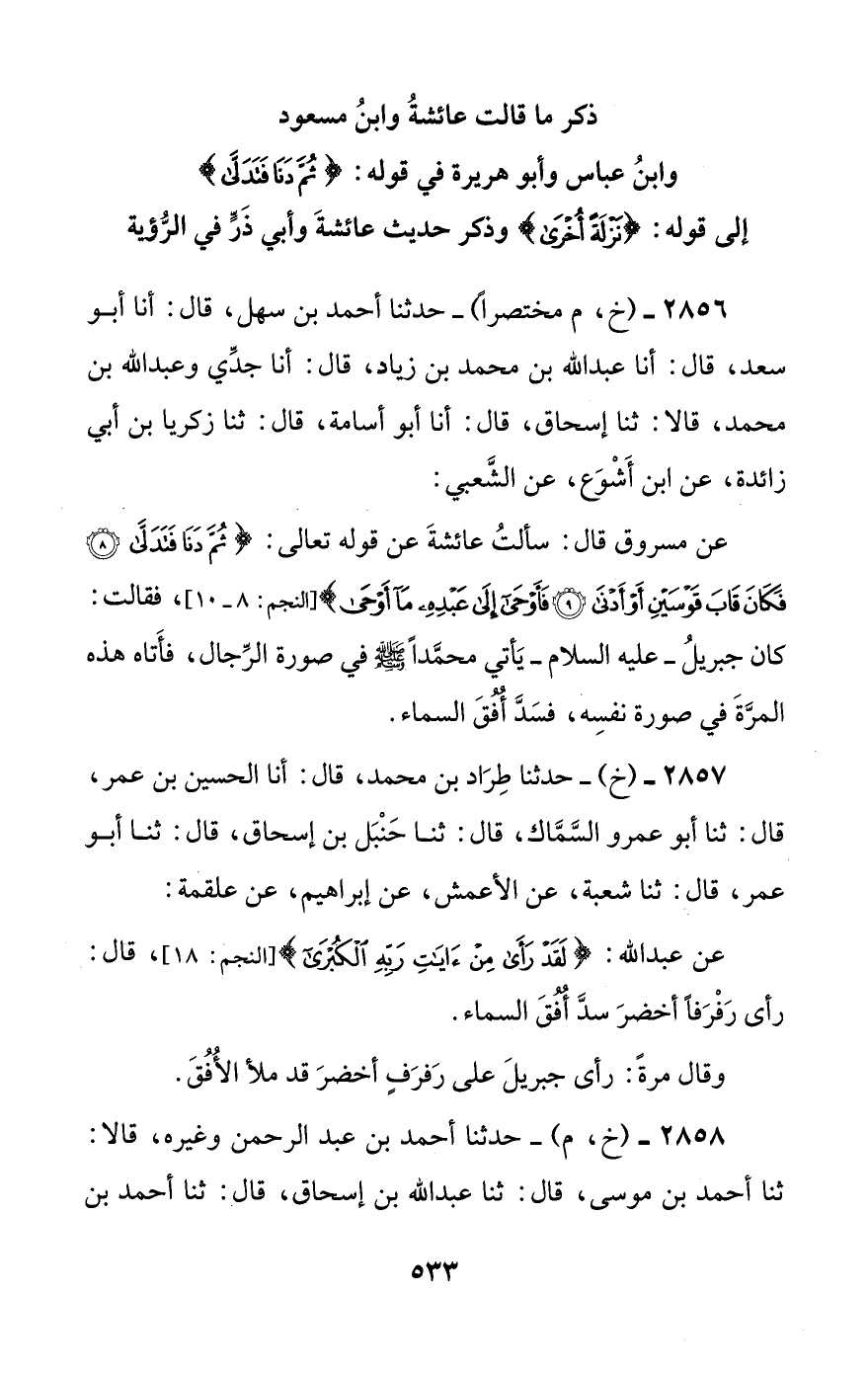 2858 - (خ، م) - حدثنا أحمد بن عبد الرحمن وغيره، قالا: ثنا أحمد بن موسى، قال: ثنا عبد الله بن إسحاق، قال: ثنا أحمد بن #534# الخليل، قال: ثنا الأشيب، قال: ثنا زهير، قال: