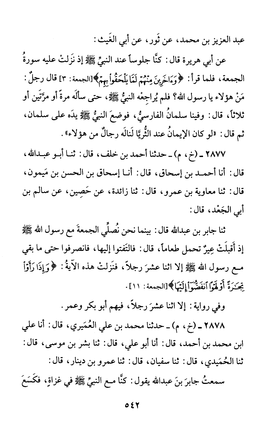 2878 - (خ، م) - حدثنا محمد بن علي العميري، قال: أنا علي بن محمد بن أحمد، قال: أنا أبو علي، قال: ثنا بشر بن موسى، قال: ثنا الحميدي، قال: ثنا سفيان، قال: ثنا عمرو بن دينار، قال: