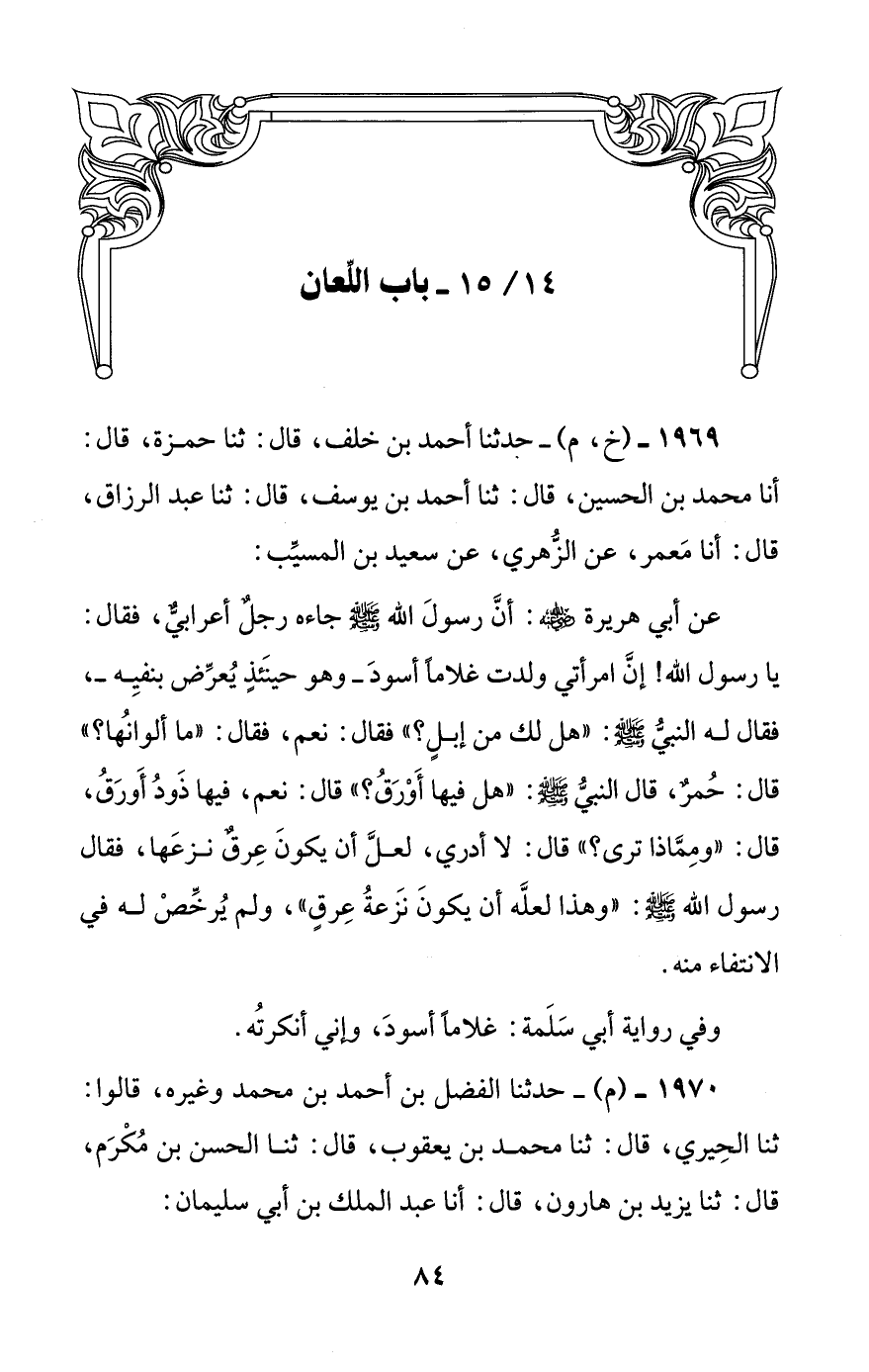 1969 - (خ، م) - حدثنا أحمد بن خلف، قال: ثنا حمزة، قال: أنا محمد بن الحسين، قال: ثنا أحمد بن يوسف، قال: ثنا عبد الرزاق، قال: أنا معمر، عن الزهري، عن سعيد بن المسيب: