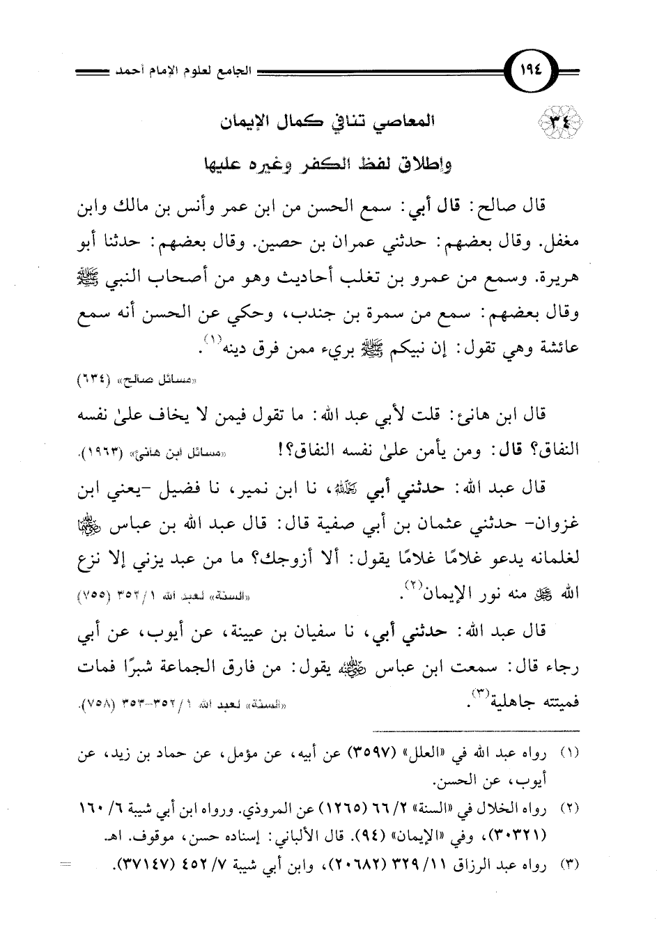 (¬2) رواه الخلال في "السنة" 2/ 66 (1265) عن المروذي. ورواه ابن أبي شيبة 6/ 160 (30321)، وفي "الإيمان" (94). قال الألباني: إسناده حسن، موقوف. اهـ.