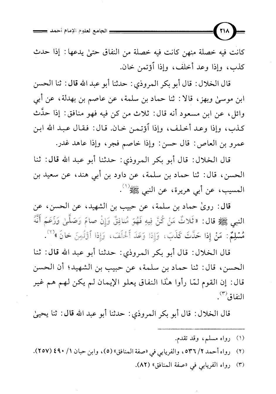 (¬2) رواه أحمد 2/ 536، والفريابي في "صفة المنافق" (5)، وابن حبان 1/ 490 (257).