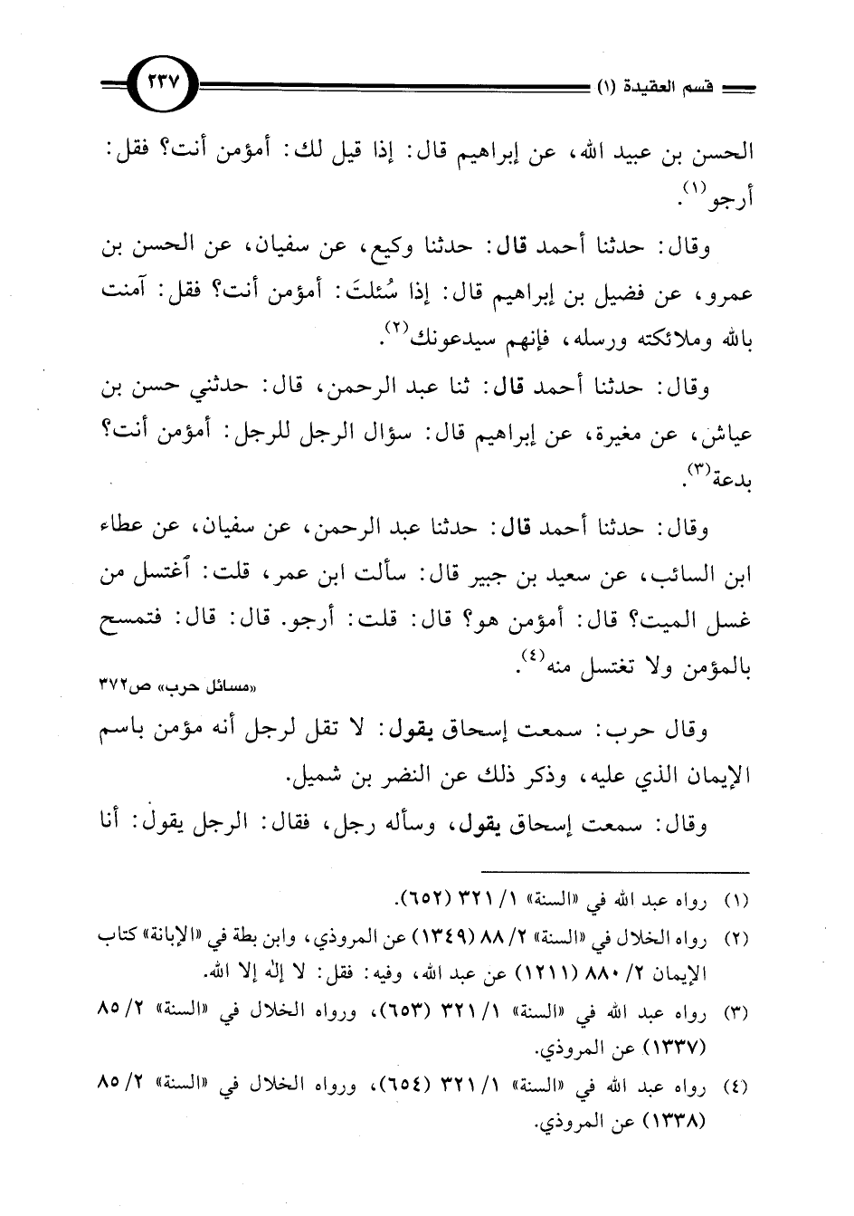 (¬4) رواه عبد اللَّه في "السنة" 1/ 321 (654)، ورواه الخلال في "السنة" 2/ 85 (1338) عن المروذي.
