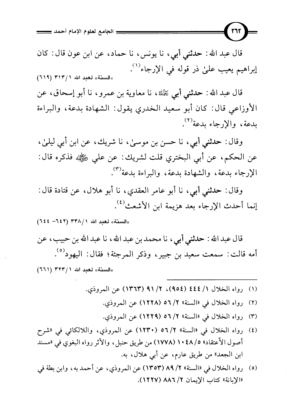 (¬5) رواه الخلال في "السنة" 2/ 89 (1353) عن المروذي، عن أحمد به، وابن بطة في "الإبانة" كتاب الإيمان 2/ 886 (1227).