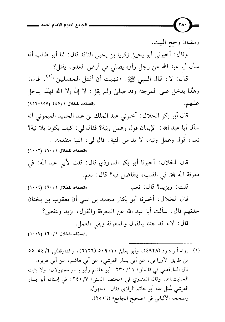 "السنة" للخلال 1/ 460 (1004)