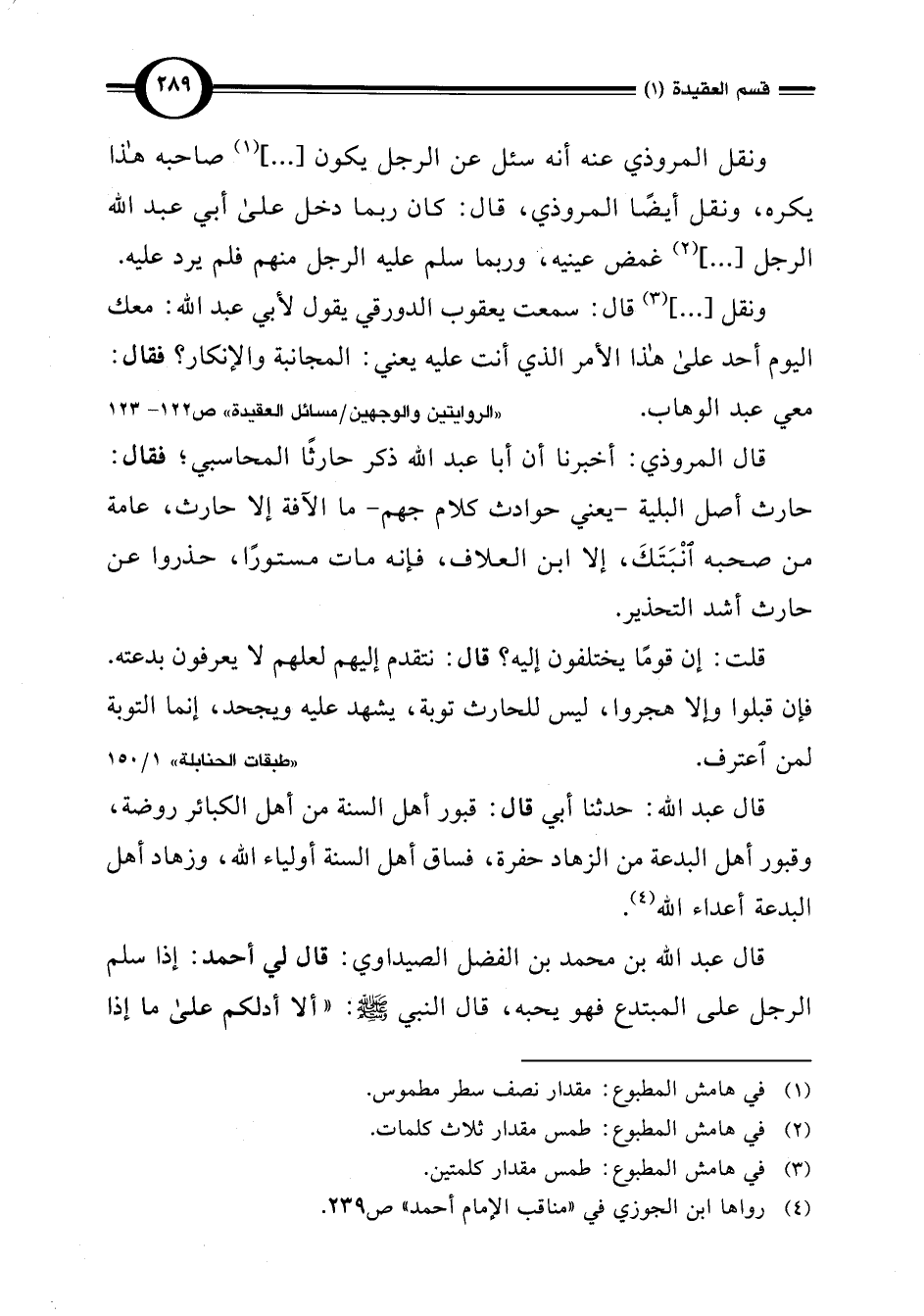 "الروايتين والوجهين/ مسائل العقيدة" ص 122 - 123