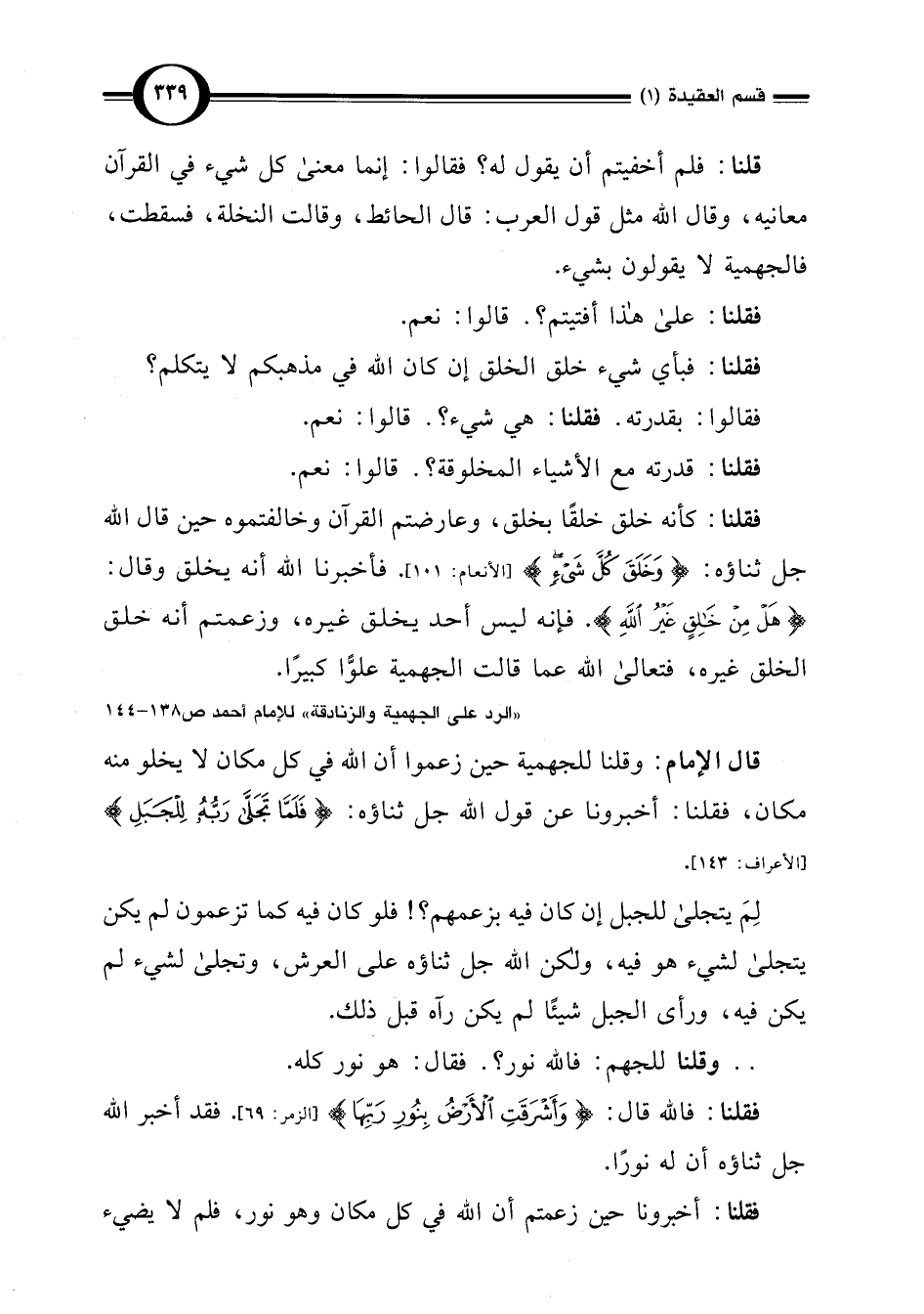 "الرد على الجهمية والزنادقة" للإمام أحمد ص 138 - 144