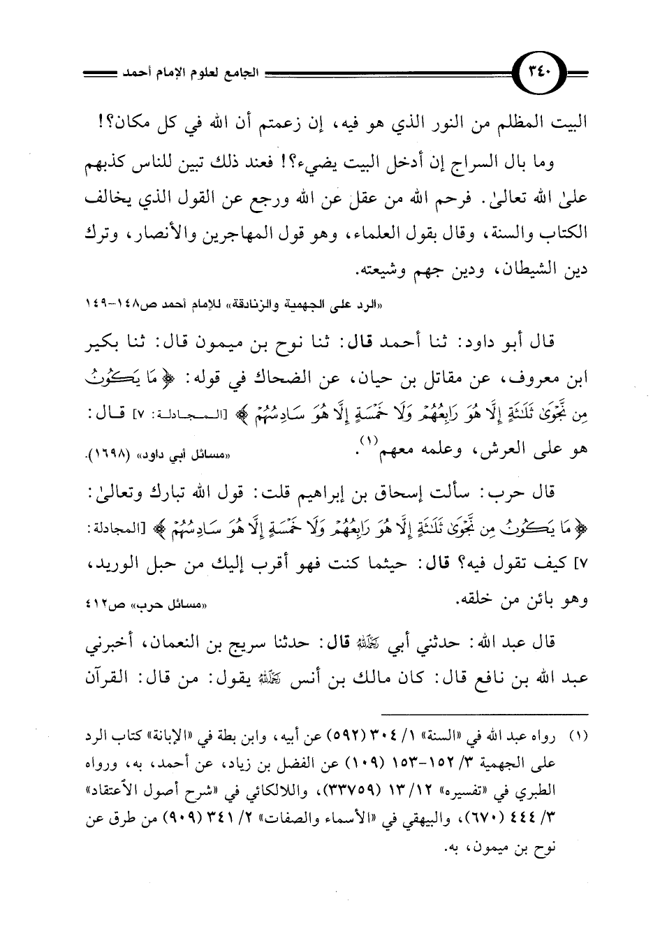 "الرد على الجهمية الزنادقة" للإماد أحمد ص 148 - 149