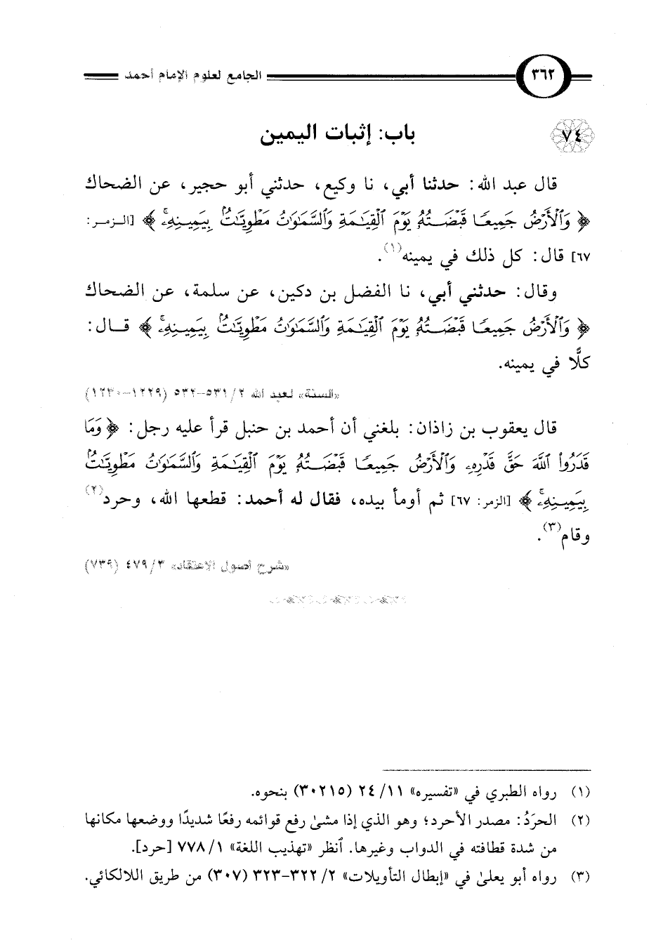 (¬3) رواه أبو يعلى في "إبطال التأويلات" 2/ 322 - 323 (307) من طريق اللالكائي.