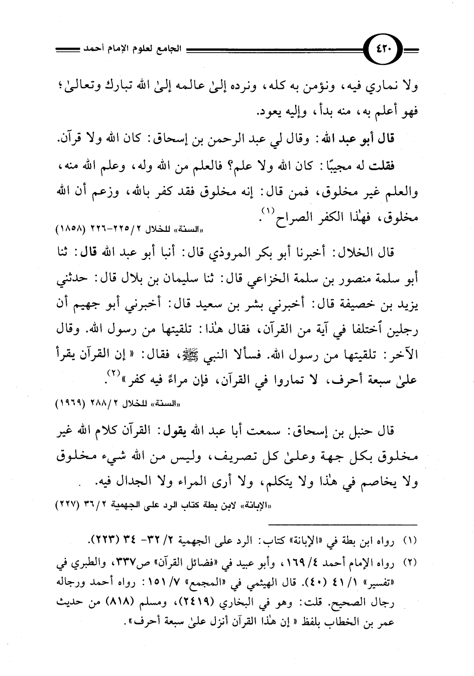 "السنة" للخلال 2/ 225 - 226 (1858)