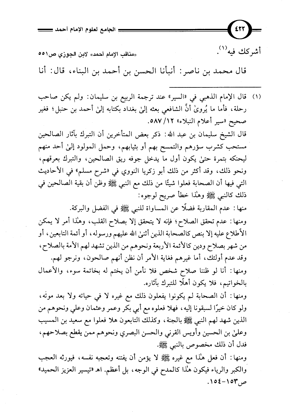 "مناقب الإمام أحمد" لابن الجوزي ص 551