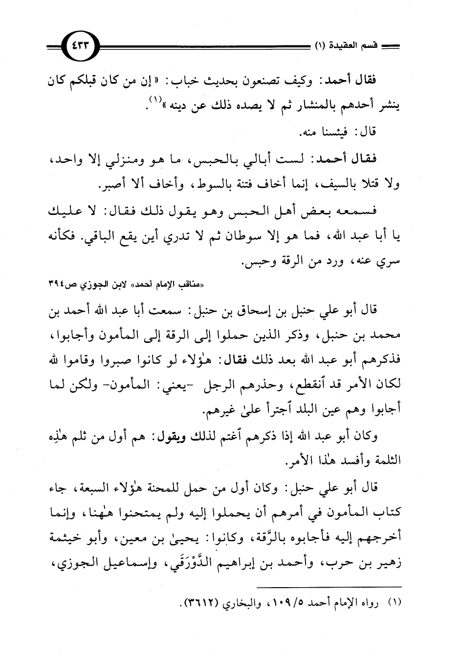 "مناقب الإمام أحمد" لابن الجوزي ص 394