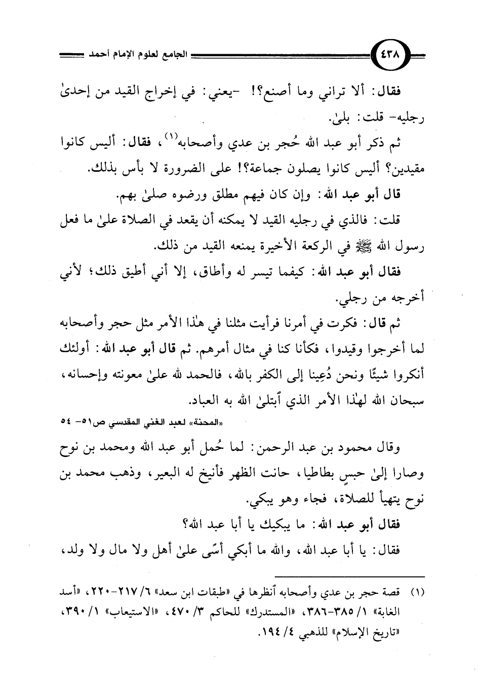 "المحنة" لعبد الغني المقدسي ص 51 - 54