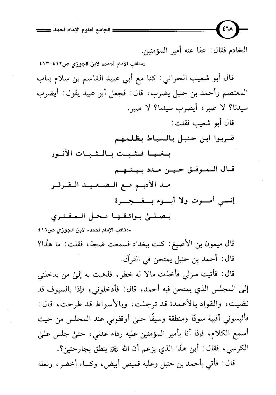"مناقب الإمام أحمد" لابن الجوزي ص 416