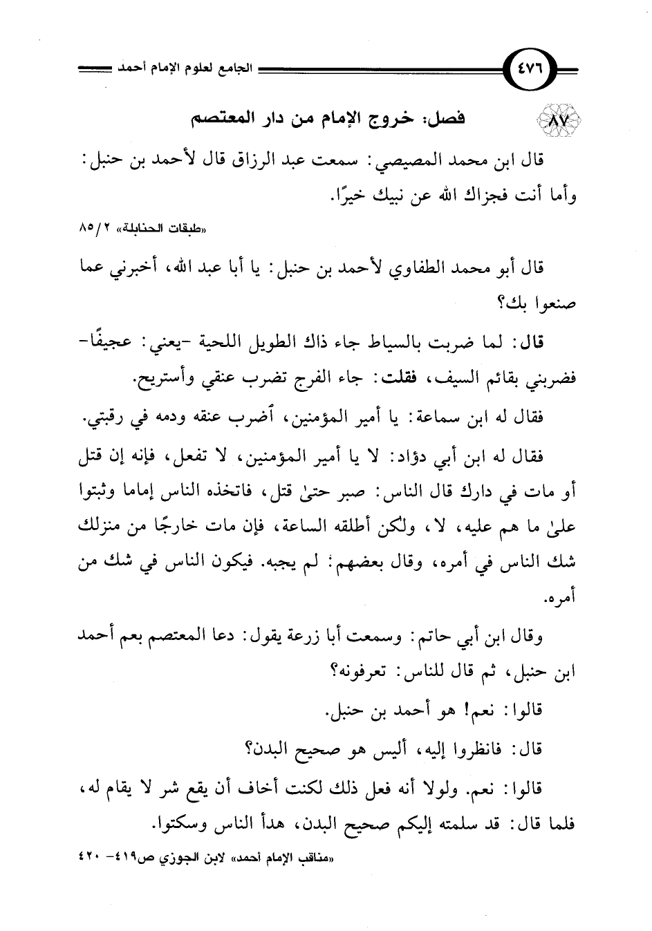 "مناقب الإمام أحمد" لابن الجوزي ص 419 - 420
