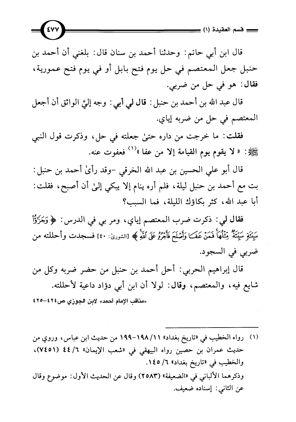 "مناقب الإمام أحمد" لابن الجوزي ص 424 - 425