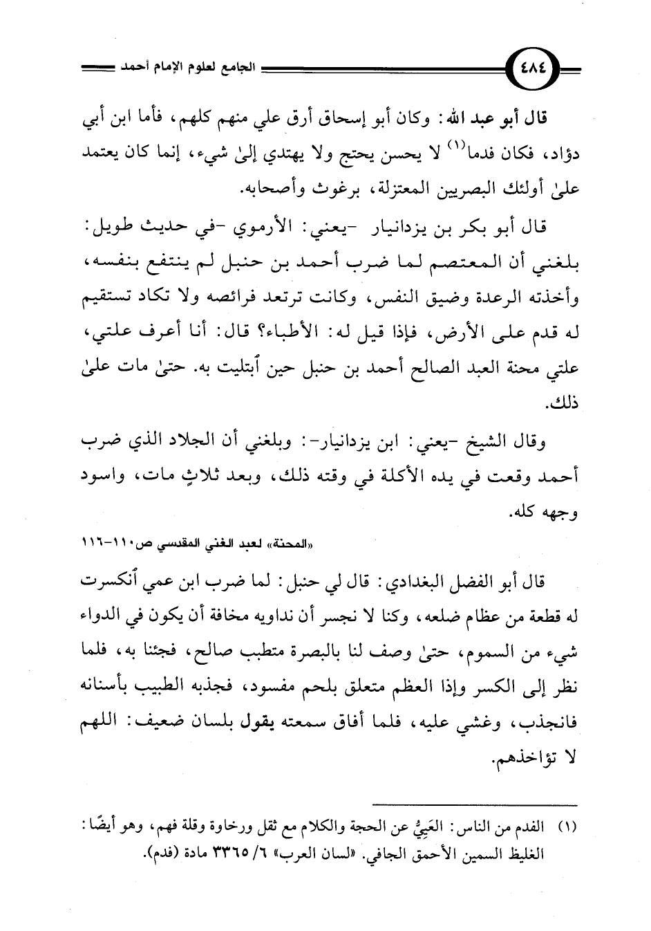 "المحنة" لعبد الغني المقدسي ص 110 - 116