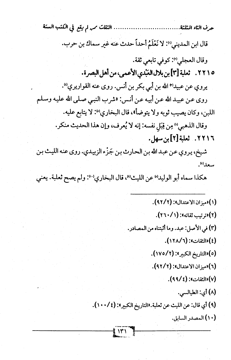 2215 - ثعلبة [3] بن بلال العَبْدي الأعمى، من أهل البصرة.