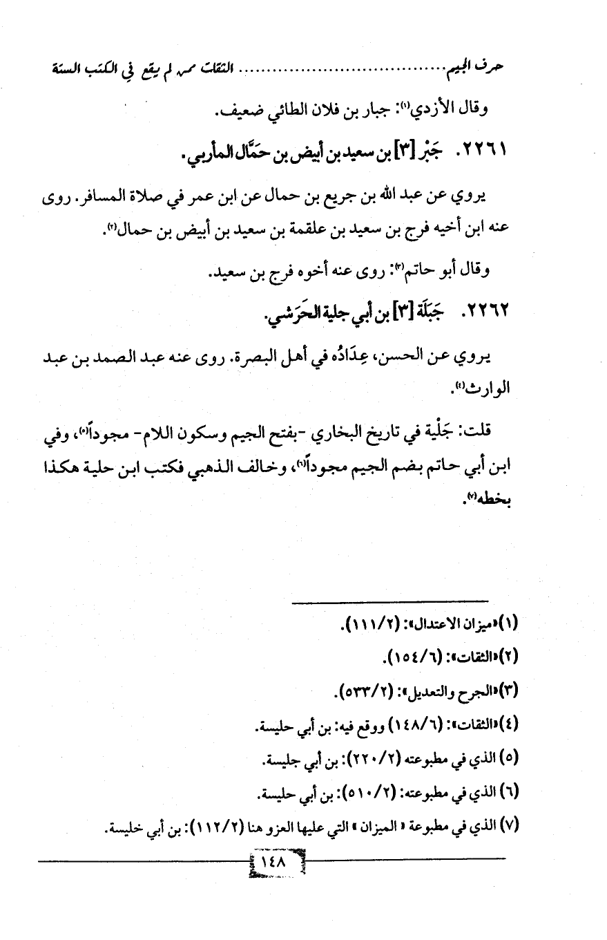 قلت: جَلْية في تاريخ البخاري -بفتح الجيم وسكون اللام- مجوداً (¬5)، وفي ابن أبي حاتم بضم الجيم مجوداً (¬6)، وخالف الذهبي فكتب ابن حلية هكذا بخطه (¬7).