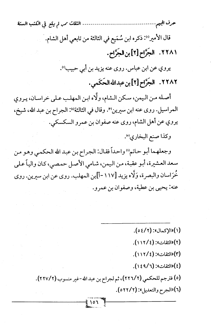 (¬5) فترجم للحكمي (2/ 226)، ثم لجراح بن عبد الله-غير منسوب (2/ 227).