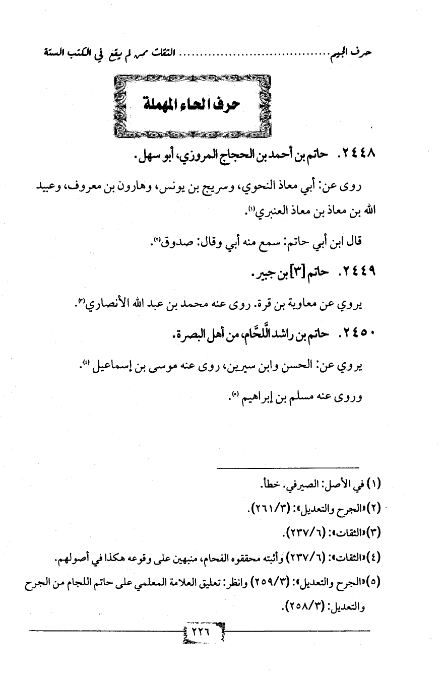 (¬5) «الجرح والتعديل»: (3/ 259) وانظر: تعليق العلامة المعلمي على حاتم اللحام من الجرح والتعديل: (3/ 258).
