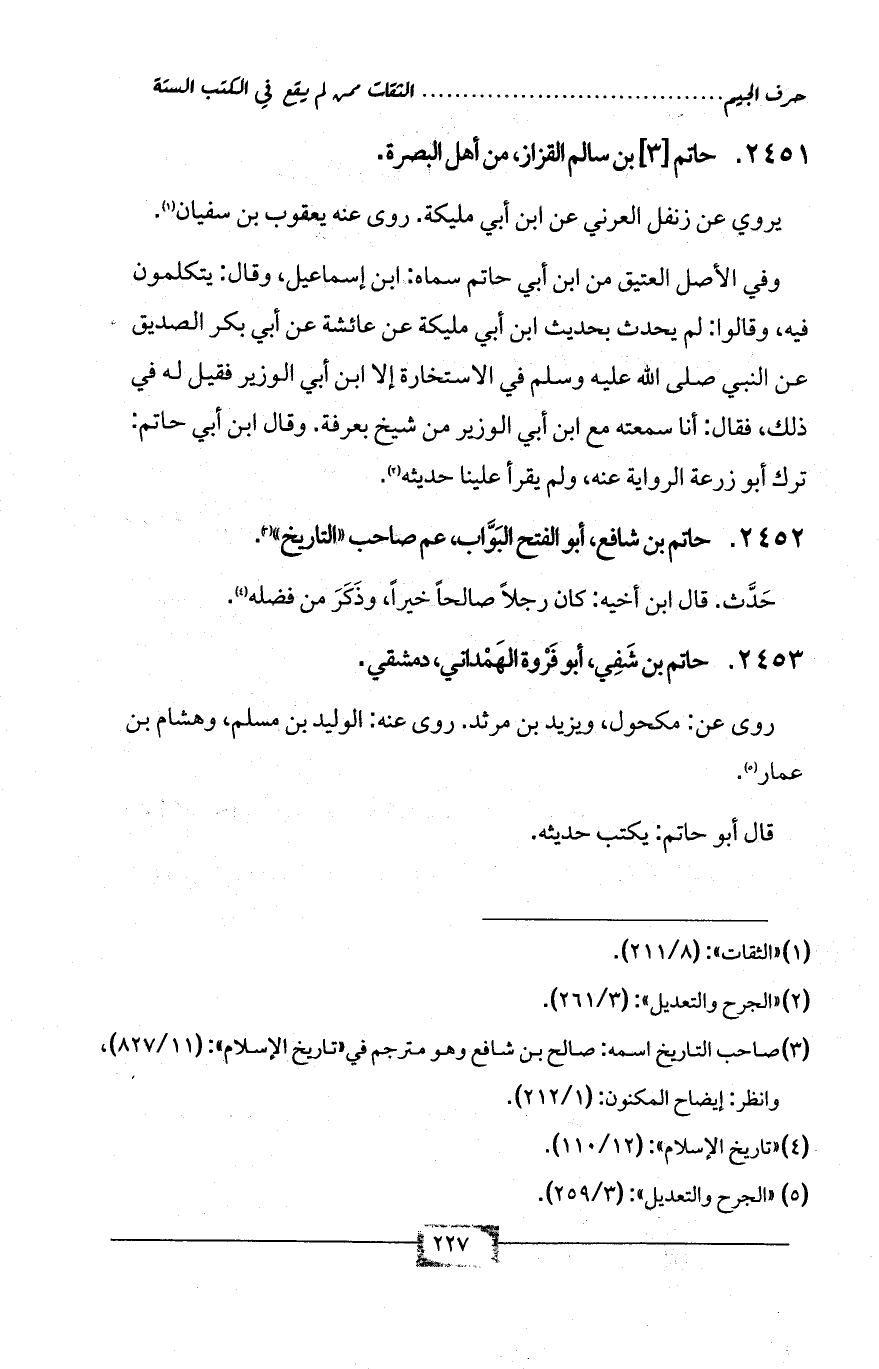 2453 - حاتم بن شَفِي، أبو فَرْوة الهَمْداني، دمشقي.