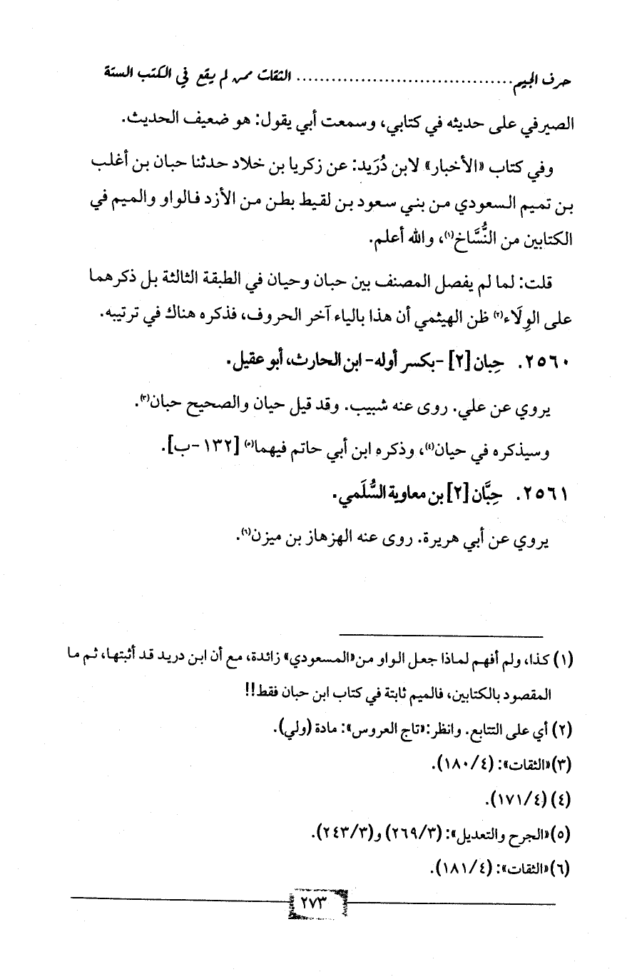 (¬1) كذا، ولم أفهم لماذا جعل الواو من «المسعودي» زائدة، مع أن ابن دريد قد أثبتها، ثم ما المقصود بالكتابين، فالميم ثابتة في كتاب ابن حبان فقط!!