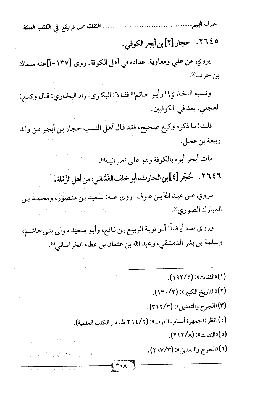 2646 - حُجْر [4] بن الحارث، أبو خلف الغَسَّاني، من أهل الرَّمْلة.