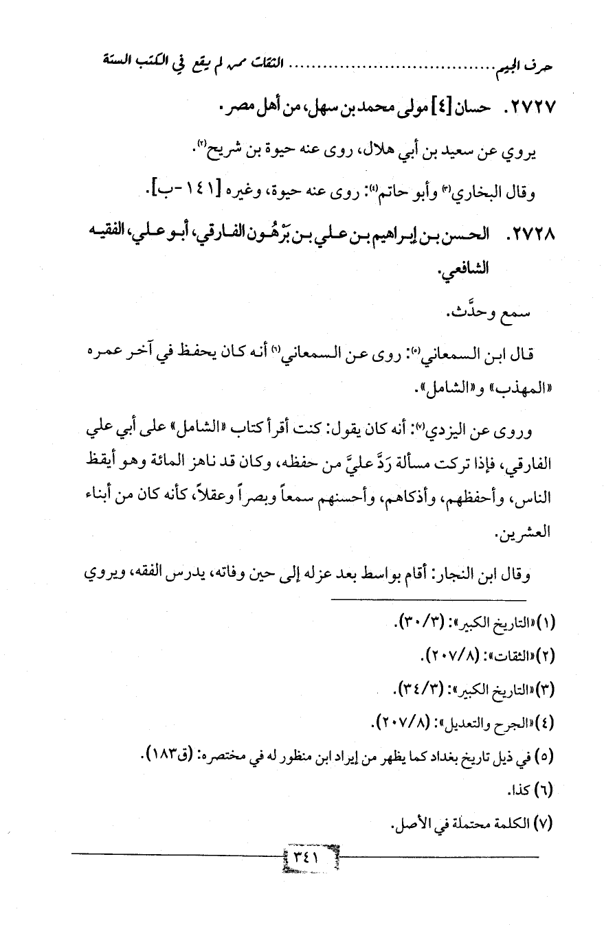 2728 - الحسن بن إبراهيم بن علي بن بَرْهُون الفارقي، أبو علي، الفقيه الشافعي.