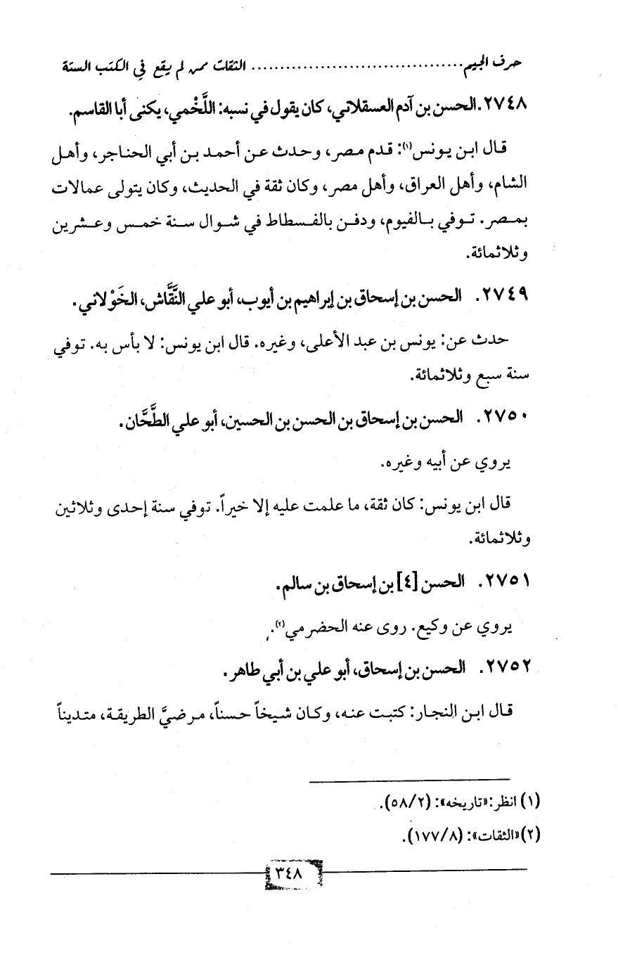2750 - الحسن بن إسحاق بن الحسن بن الحسين، أبو علي الطَّحَّان.