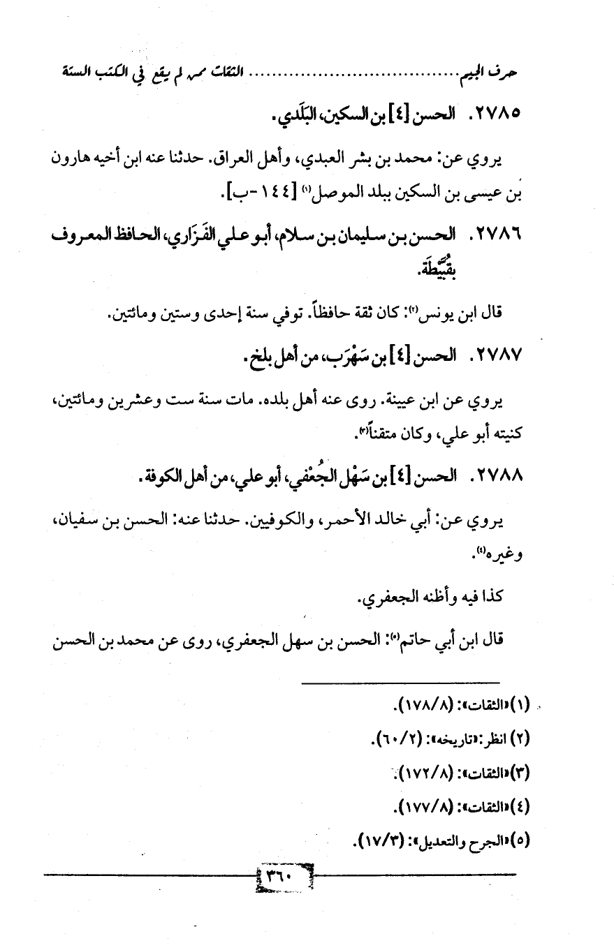 2786 - الحسن بن سليمان بن سلام، أبو علي الفَزَاري، الحافظ المعروف بقُبَّيْطَة.