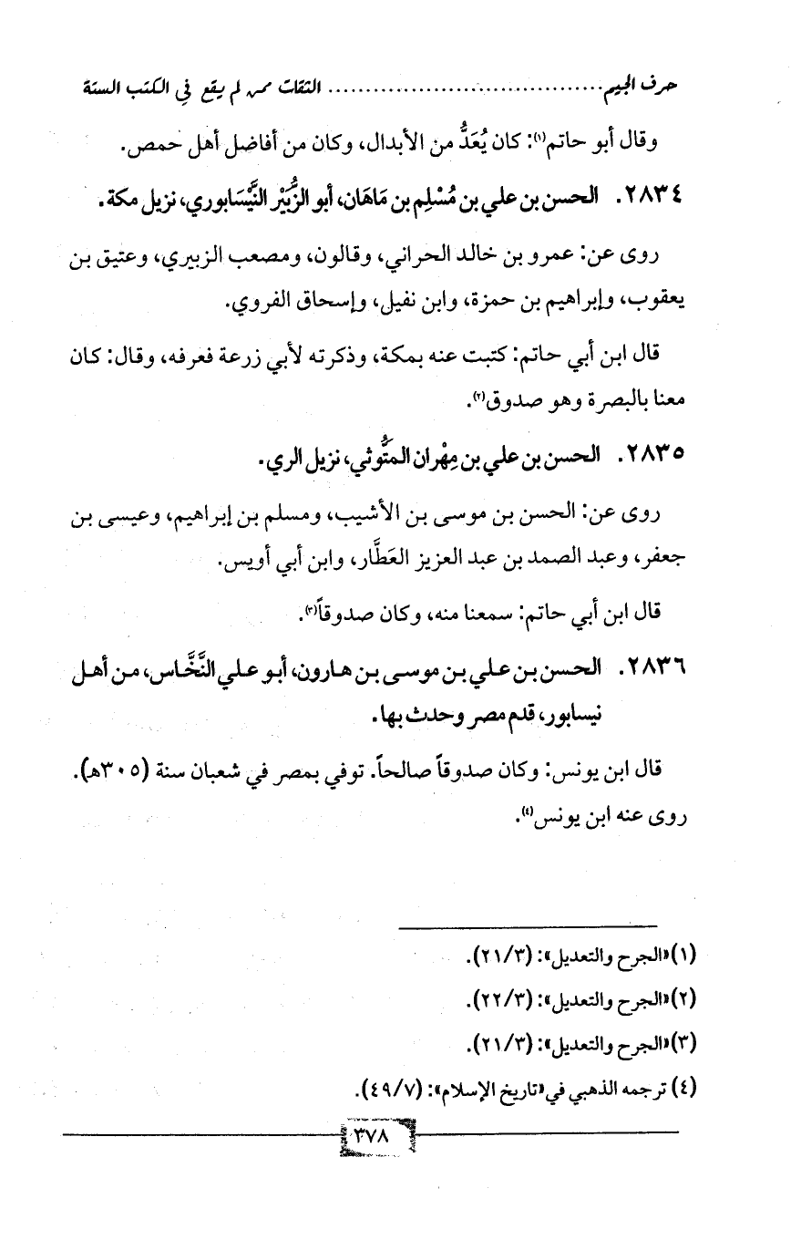 2834 - الحسن بن علي بن مُسْلِم بن مَاهَان، أبو الزُّبَيْر النَّيْسَابوري، نزيل مكة.