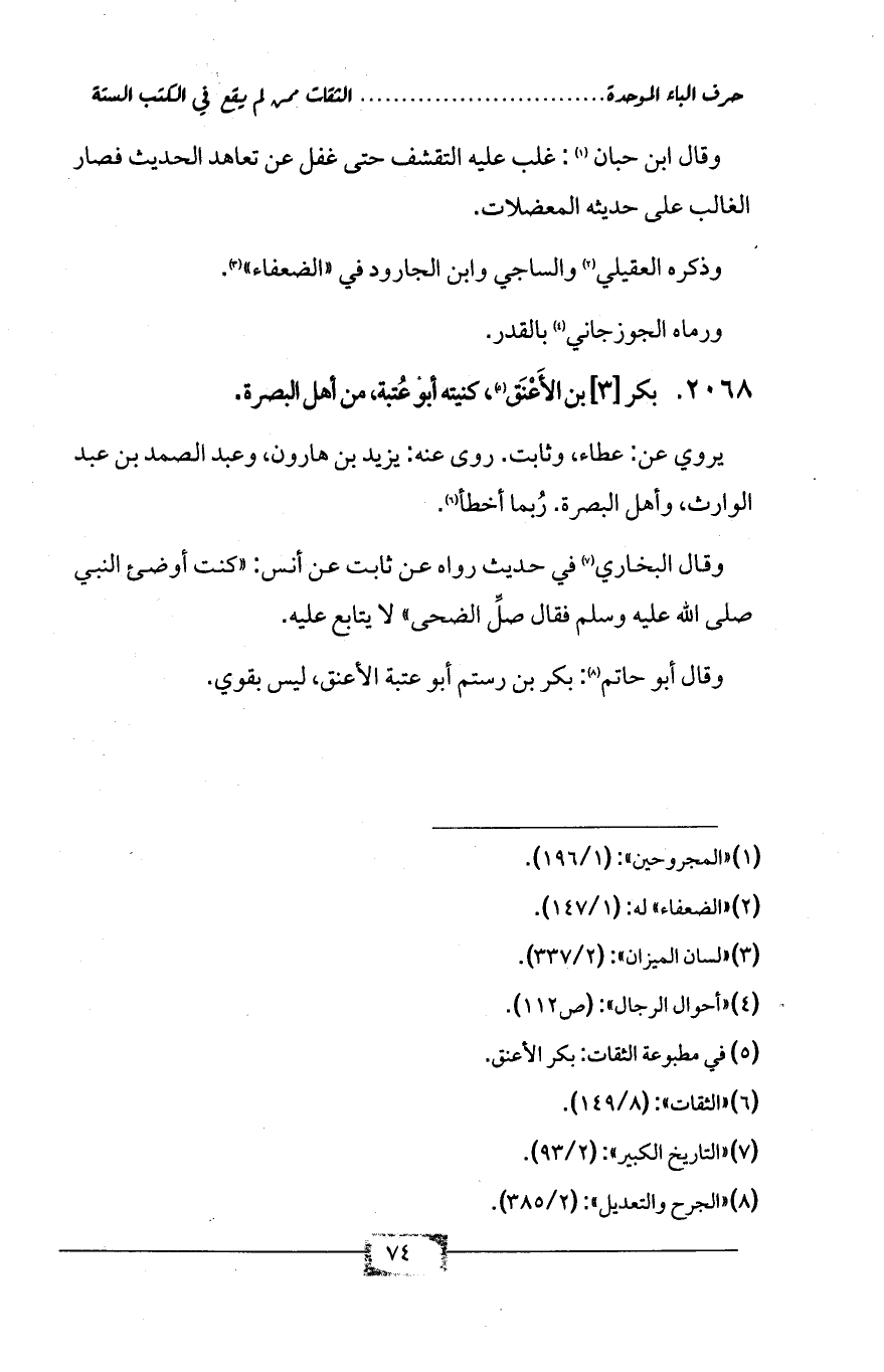 2068 - بكر [3] بن الأَعْنَق (¬5)، كنيته أبو عُتبة، من أهل البصرة.