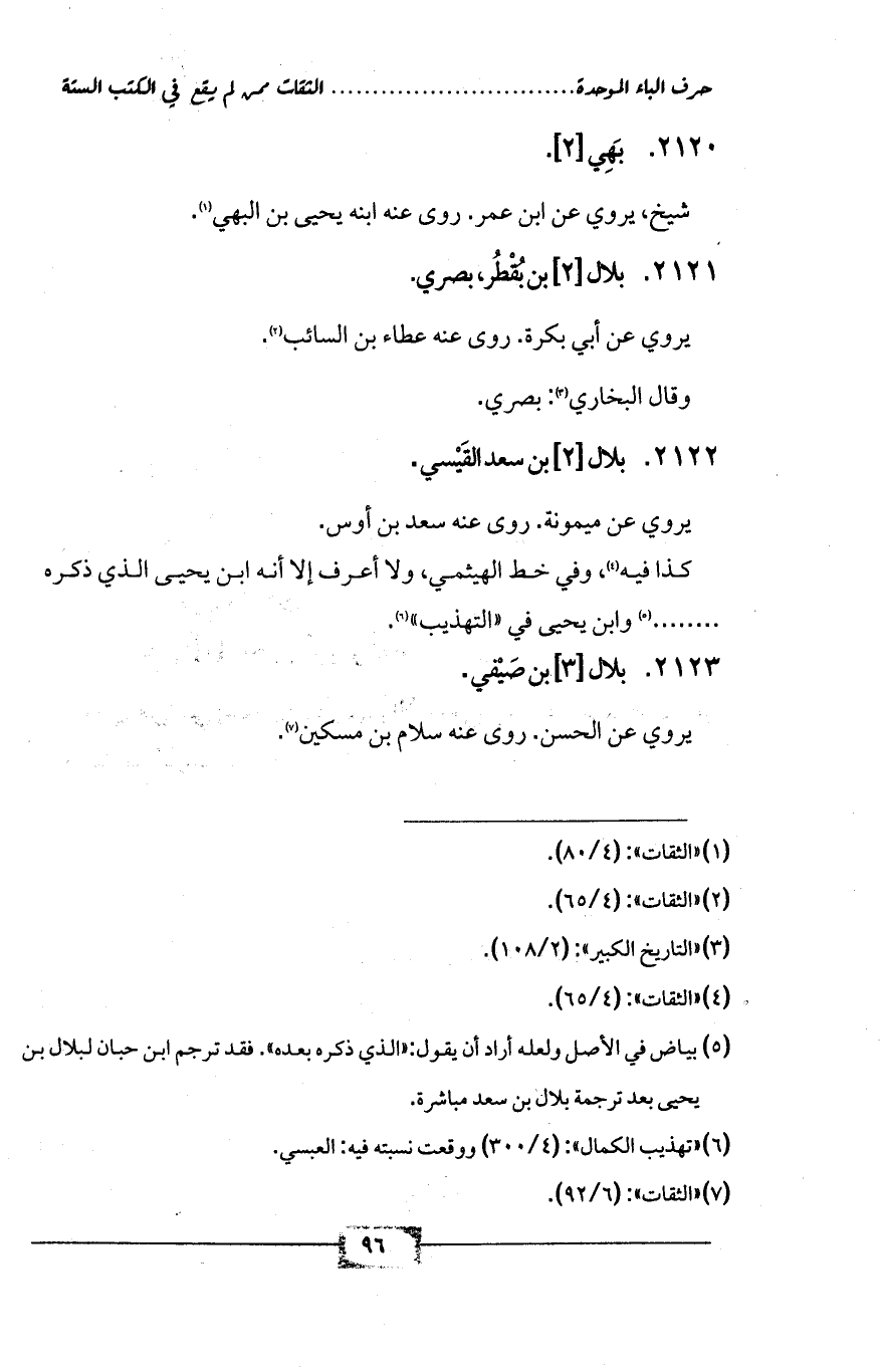 (¬5) بياض في الأصل ولعله أراد أن يقول: «الذي ذكره بعده». فقد ترجم ابن حبان لبلال بن يحيى بعد ترجمة بلال بن سعد مباشرة.