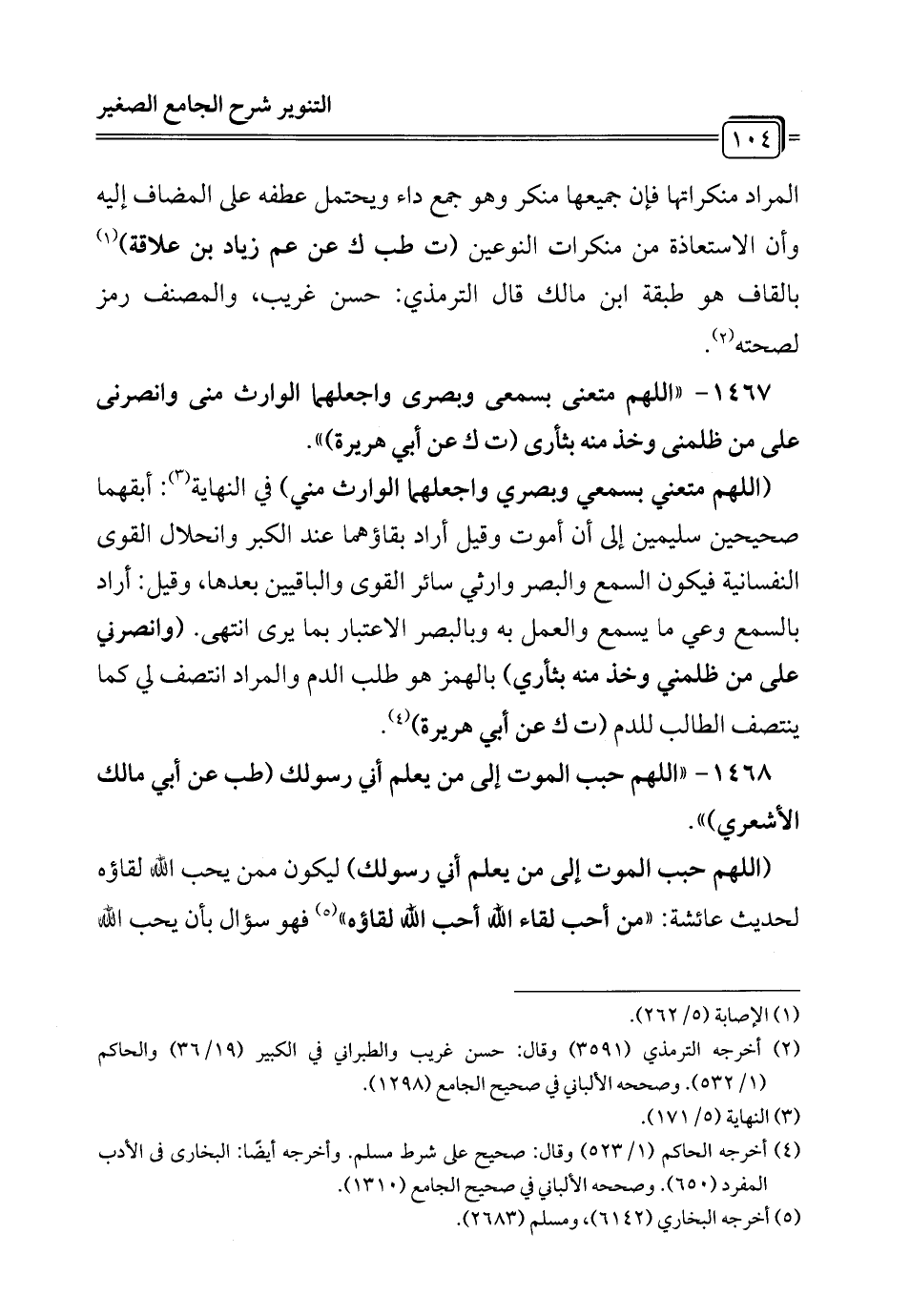 1467 - "اللَّهم متعنى بسمعى وبصرى واجعلهما الوارث مني وانصرنى على من ظلمنى وخذ منه بثأرى (ت ك عن أبي هريرة) ".