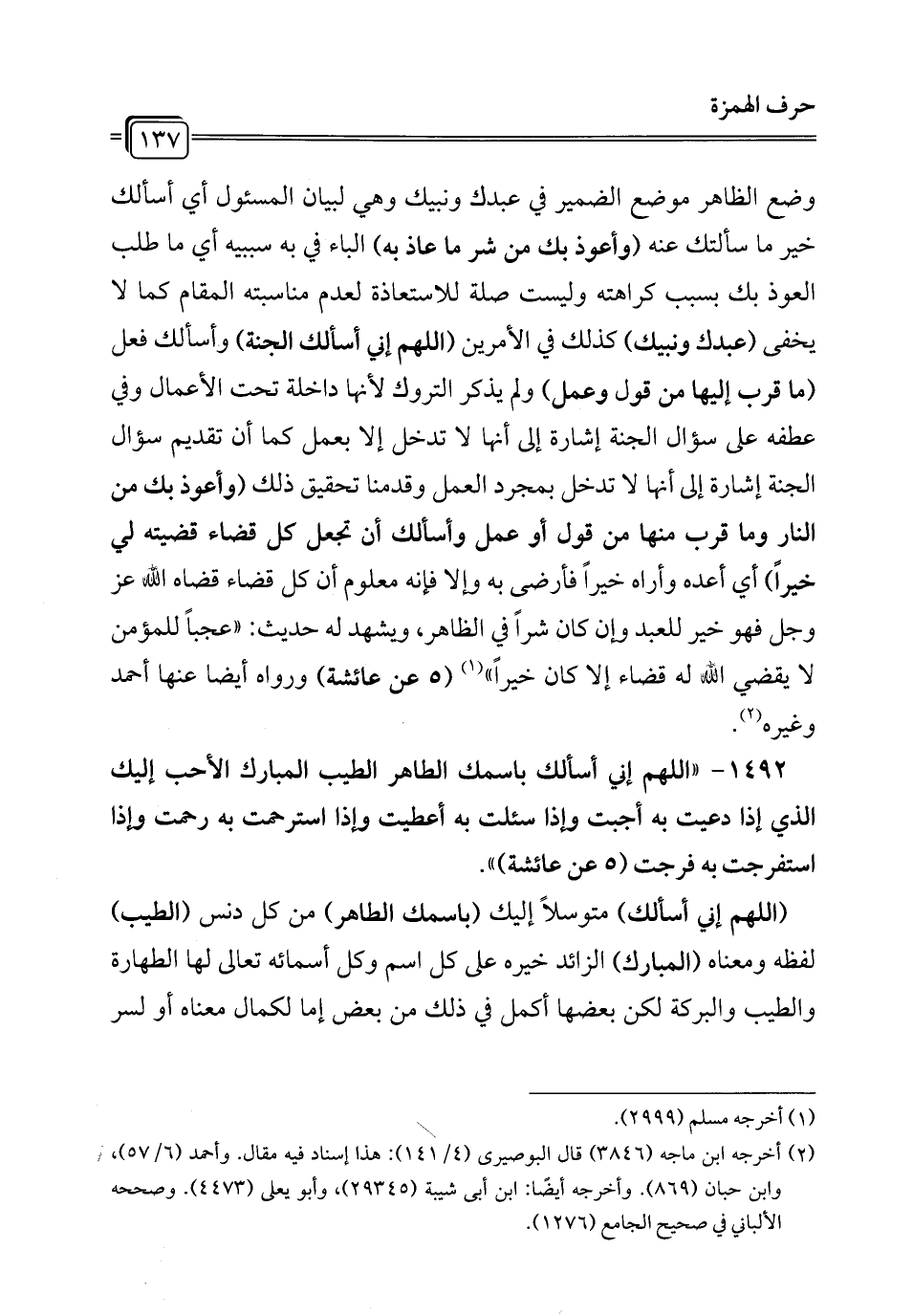 1492 - "اللَّهم إني أسألك باسمك الطاهر الطيب المبارك الأحب إليك الذي إذا دعيت به أجبت وإذا سئلت به أعطيت وإذا استرحمت به رحمت وإذا استفرجت به فرجت (5 عن عائشة) ".