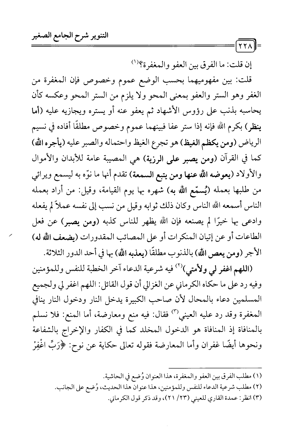 (¬1) مطلب الفرق بين العفو والمغفرة هذا العنوان وُضع في الحاشية.