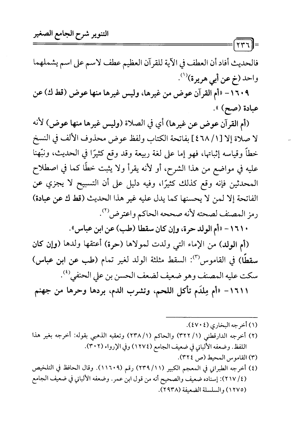 1609 - "أم القرآن عوض من غيرها، وليس غيرها منها عوض (قط ك) عن عبادة (صح) ".