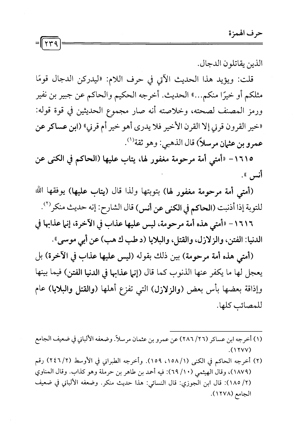 1615 - "أمتي أمة مرحومة مغفور لها، يتاب عليها (الحاكم في الكنى عن أنس" ..