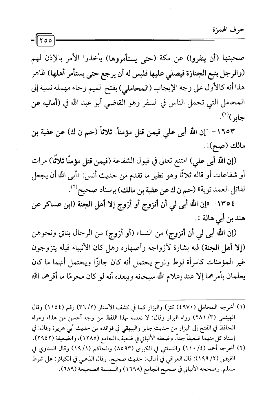 1653 - "إن الله أبى علي فيمن قتل مؤمناً. ثلاثاً (حم ن ك) عن عقبة بن مالك (صح) ".