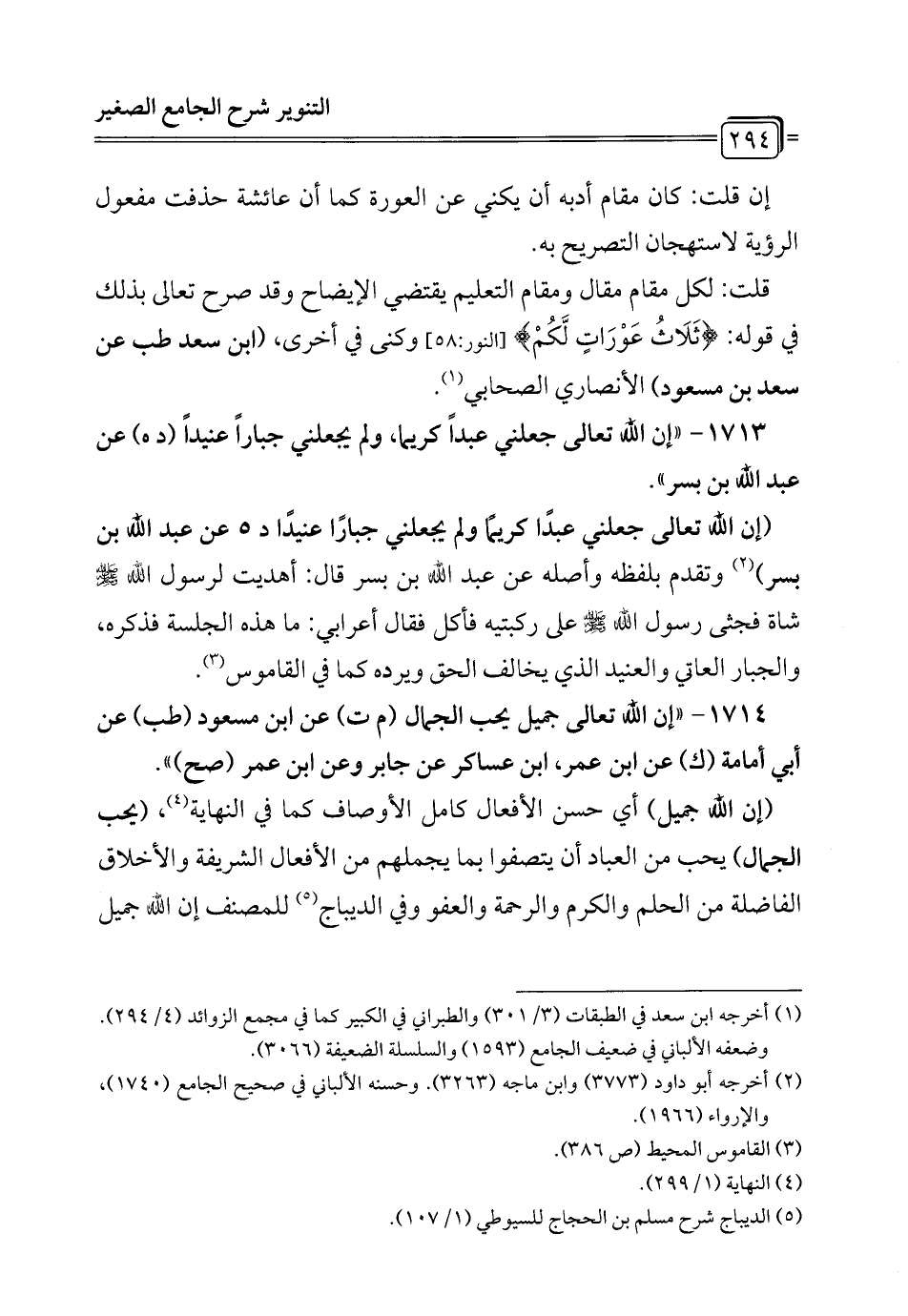 1714 - "إن الله تعالى جميل يحب الجمال (م ت) عن ابن مسعود (طب) عن أبي أمامة (ك) عن ابن عمر، ابن عساكر عن جابر وعن ابن عمر (صح) ".