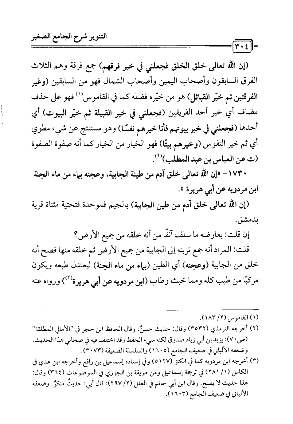 1730 - "إن الله تعالى خلق آدم من طينة الجابية، وعجنه بماء من ماء الجنة ابن مردويه عن أبي هريرة ".