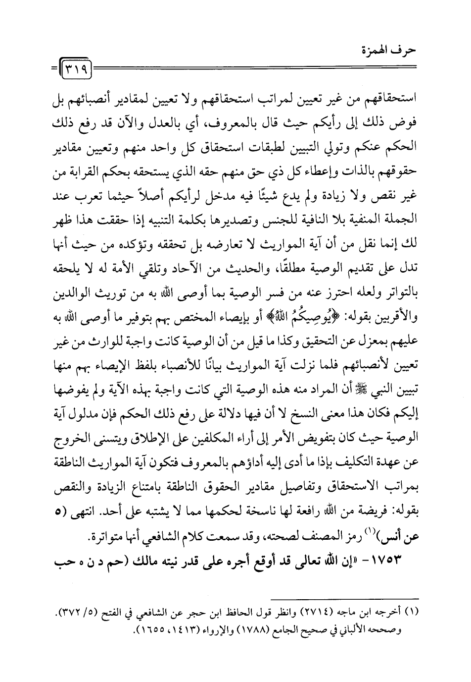 (¬1) أخرجه ابن ماجه (2714) وانظر قول الحافظ ابن حجر عن الشافعي في الفتح (5/ 372). وصححه الألباني في صحيح الجامع (1788) والإرواء (1413، 1655).