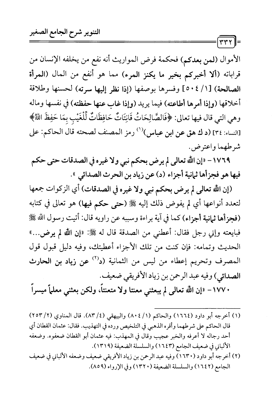 1769 - "إن الله تعالى لم يرض بحكم نبي ولا غيره في الصدقات حتى حكم فيها هو فجزأها ثمانية أجزاء (د) عن زياد بن الحرث الصدائي".