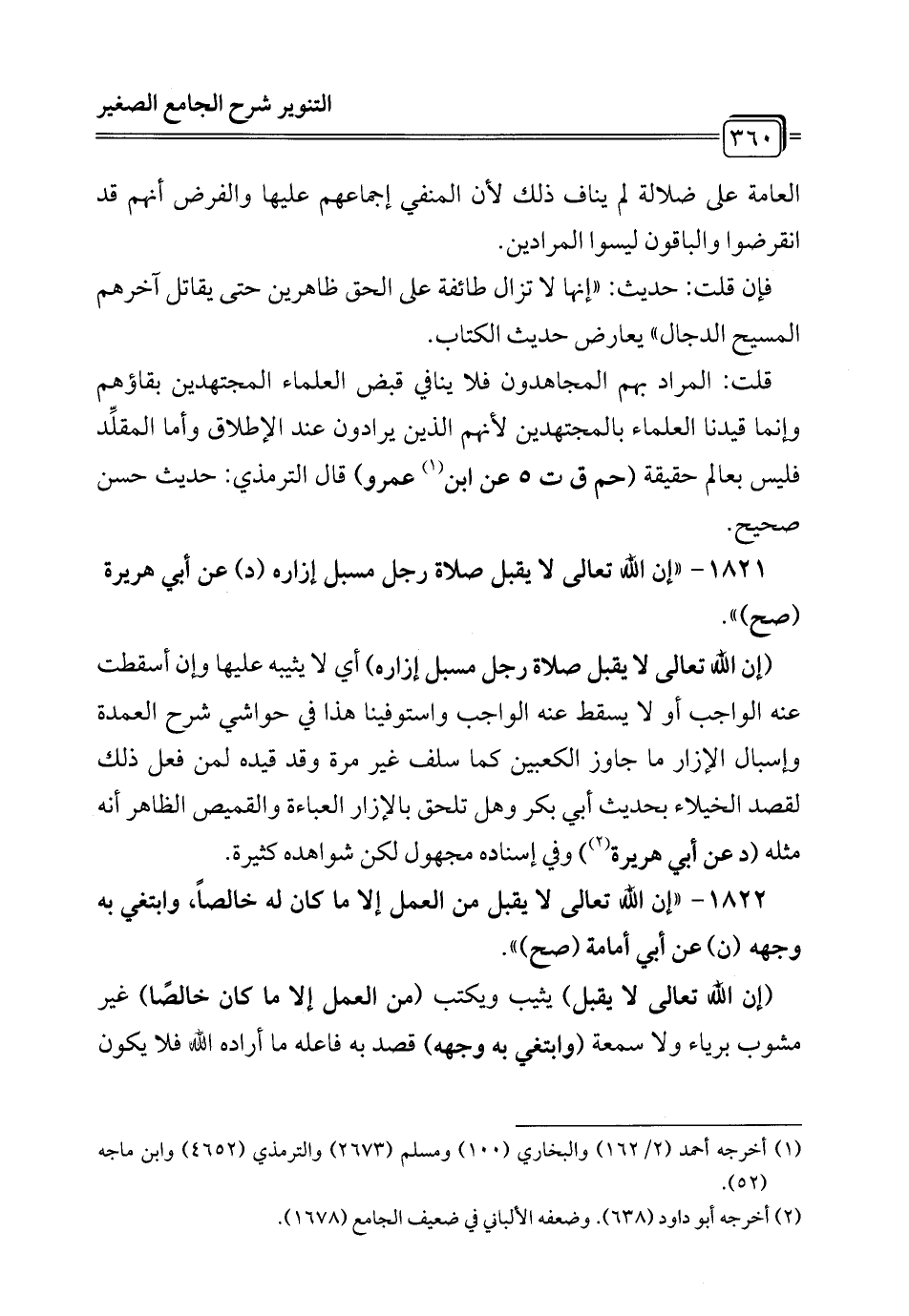 1821 - "إن الله تعالى لا يقبل صلاة رجل مسبل إزاره (د) عن أبي هريرة (صح) ".