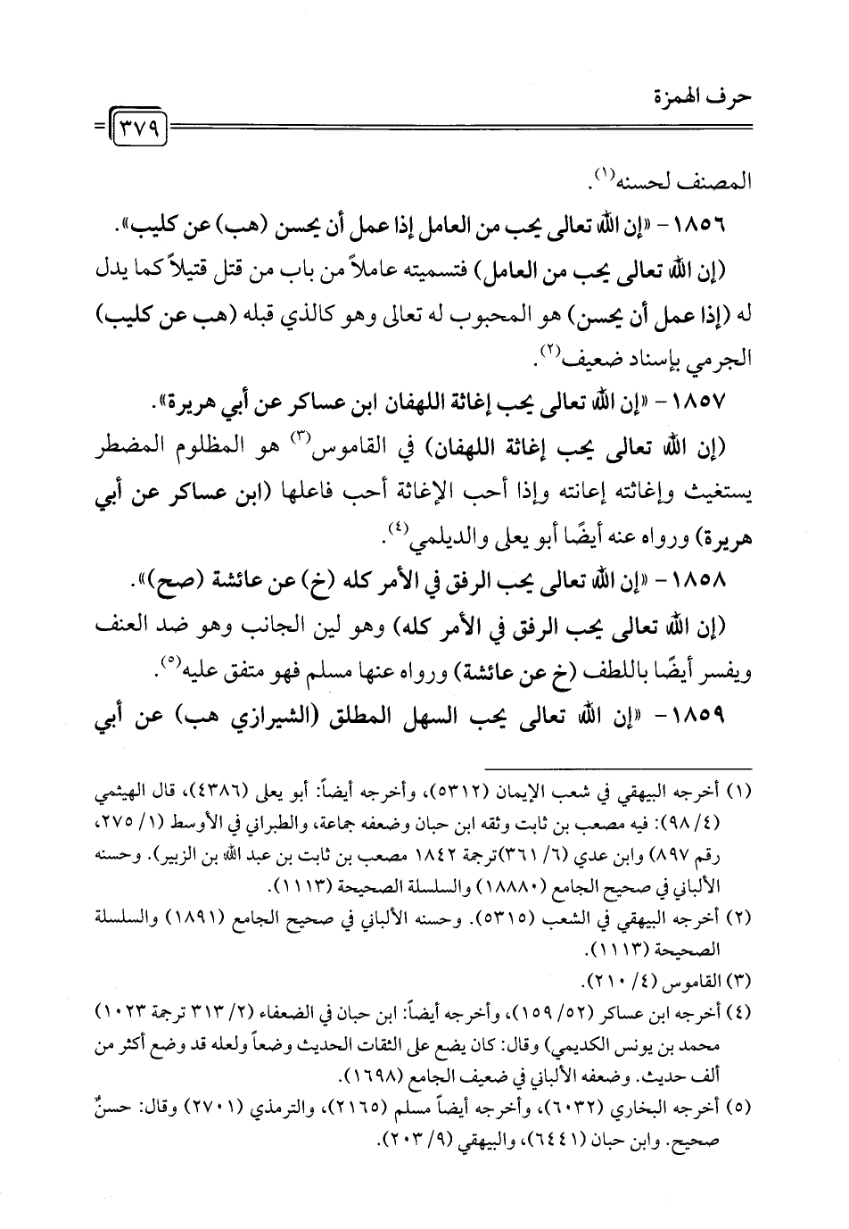 1857 - "إن الله تعالى يحب إغاثة اللهفان ابن عساكر عن أبي هريرة".