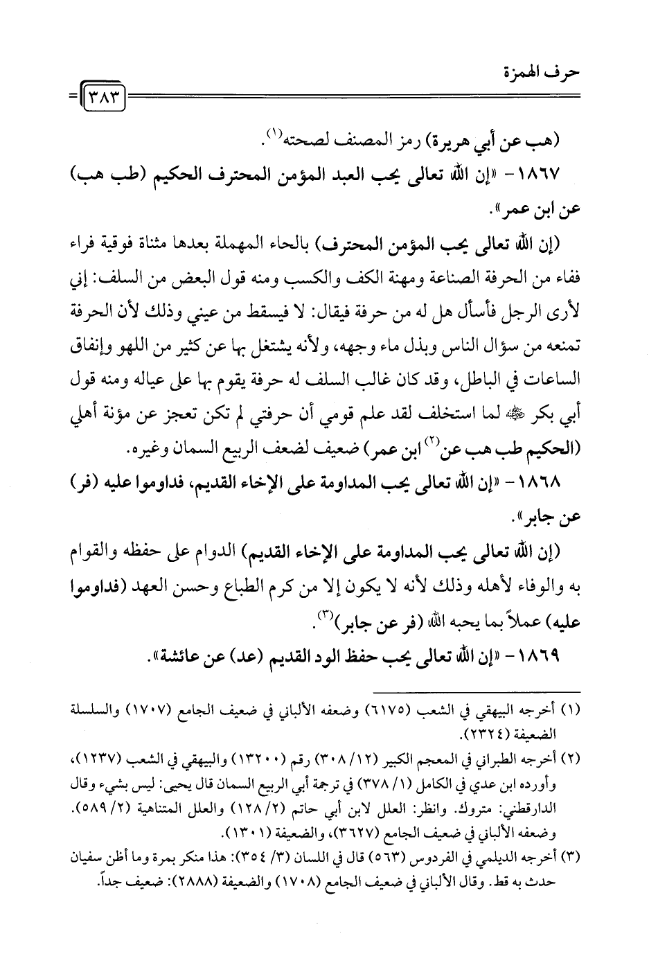 1867 - "إن الله تعالى يحب العبد المؤمن المحترف الحكيم (طب هب) عن ابن عمر".