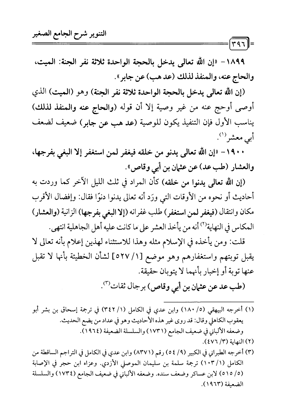 1900 - "إن الله تعالى يدنو من خلقه فيغفر لمن استغفر إلا البغي بفرجها، والعشار (طب عد) عن عثمان بن أبي وقاص".
